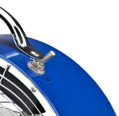 You are finding a fan model not only fit for home use but also fit for office use . That's great , our 9 inch retro metal fan is your best choice . This fan model with size of 60x16mm 2 speed 30W full copper fan motor , safety metallic fan grill,4 aluminium fan blade make big air volume , can reach to 1250rmp.Switch fan control is portable for person to choose the fan speed easily. Stable metal fan feet is convenience for you to use in table and desk . What’s more , carry handle is portable to take to everywhere you want . Blue color for this retro table fan is more fresh and fashion decoration for your room . It will be your best selling fan model for your business !